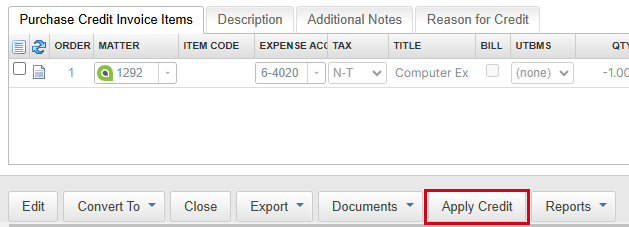 - In the Credit Invoice, click Apply Credit.