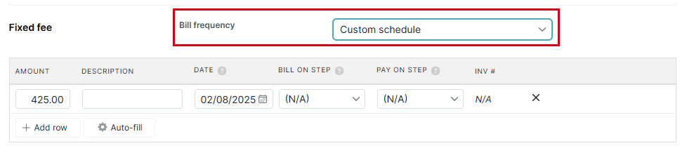 - In the Fixed fee section, click the Bill frequencydrop-down list and choose which schedule you prefer:
