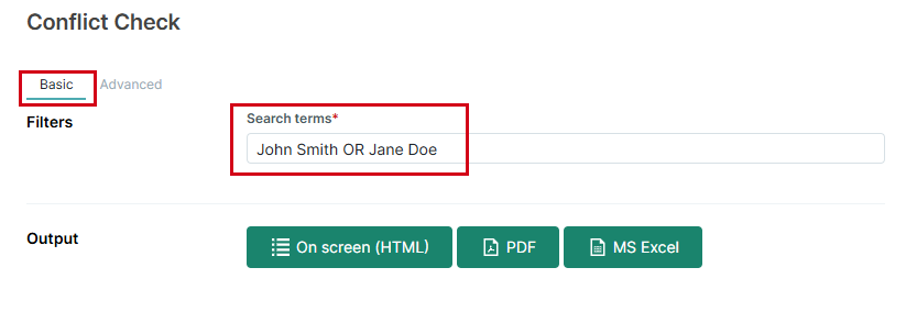 Permissions will still apply to the results you see in the Conflict Check. For example, if you do not have permission to see a matter then you will not see it as a result in any conflict check. The same applies to any documents or emails on a matter you do not have access to.