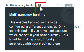 See Understanding Cash vs. Accrual Accounting for more information.Currency Use these options to set the base currency and enable multi-currency functionality.