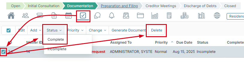 - Once the task is complete, select the checkbox for any outstanding tasks.