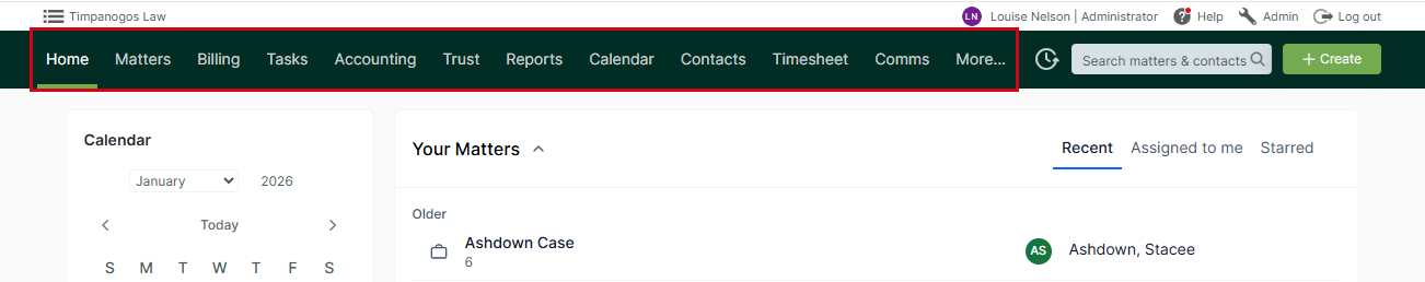 Matter Billing-Specific Menus