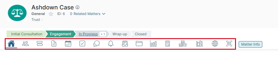 | Trust menu icon Available if trusts are enabled for this matter | Action_Details_Accounting_Menu > Trust accounting | |
