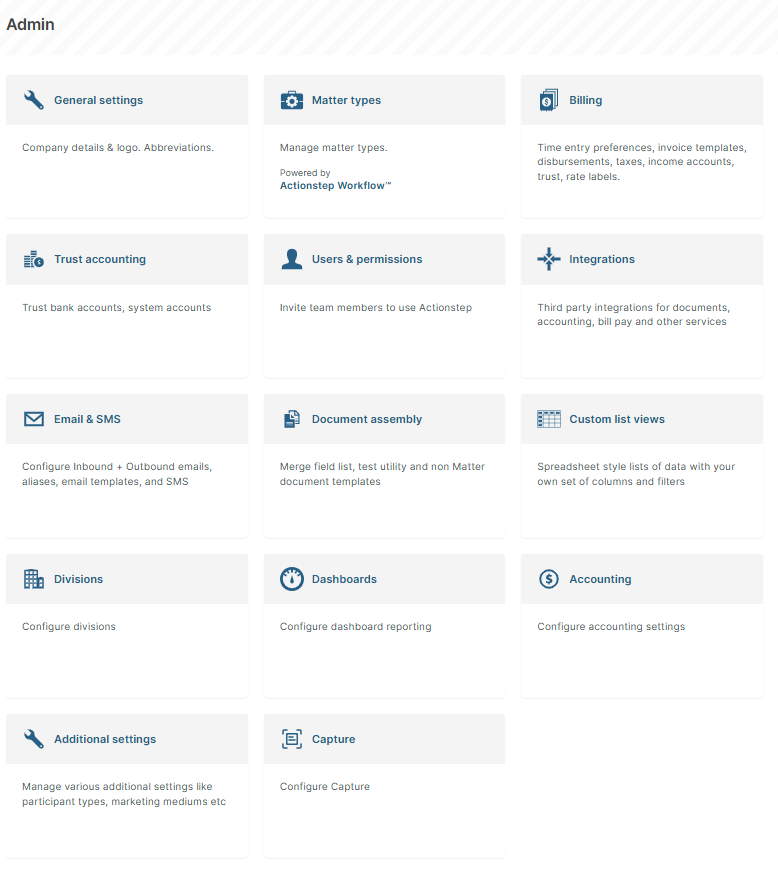 | Matter types | ActionStep_Admin_Main_Menu > ACTION TYPES | |