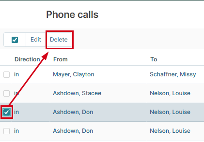- To remove a phone call from the record, select its checkbox and click Delete.