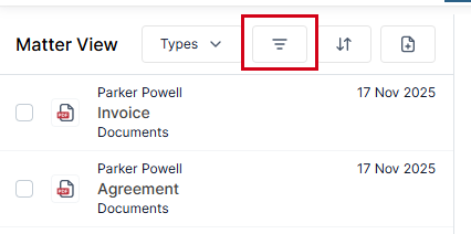 - Click the Filter icon to refine the list of files by contact information or by modification dates.