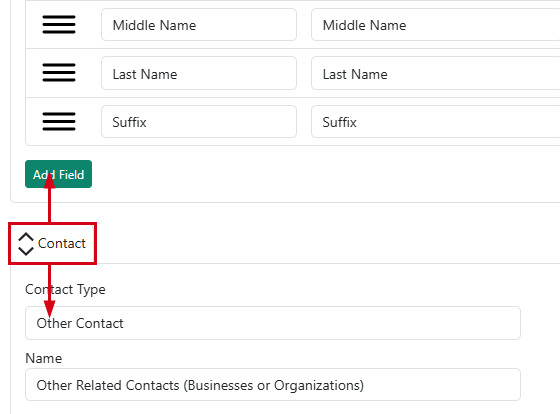 - To rearrange fields within a section, click its move icon and drag it to its new location.