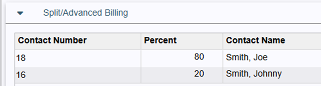 Billing percentages are defined in the Split/Advanced Billing section of Legal Accounting File Manager on a file-by-file basis.